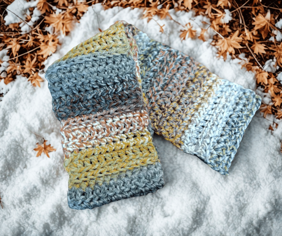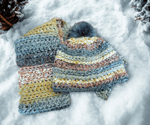 A soft, chunky scarf in layered tones of olive, warm gold, brown, pumpkin, and charcoal, balanced with taupe and cream throughout. The subtle color shifts create a relaxed, coastal-inspired look that works beautifully on its own or paired with the Finlay Hat – Coney Island for a coordinated set.